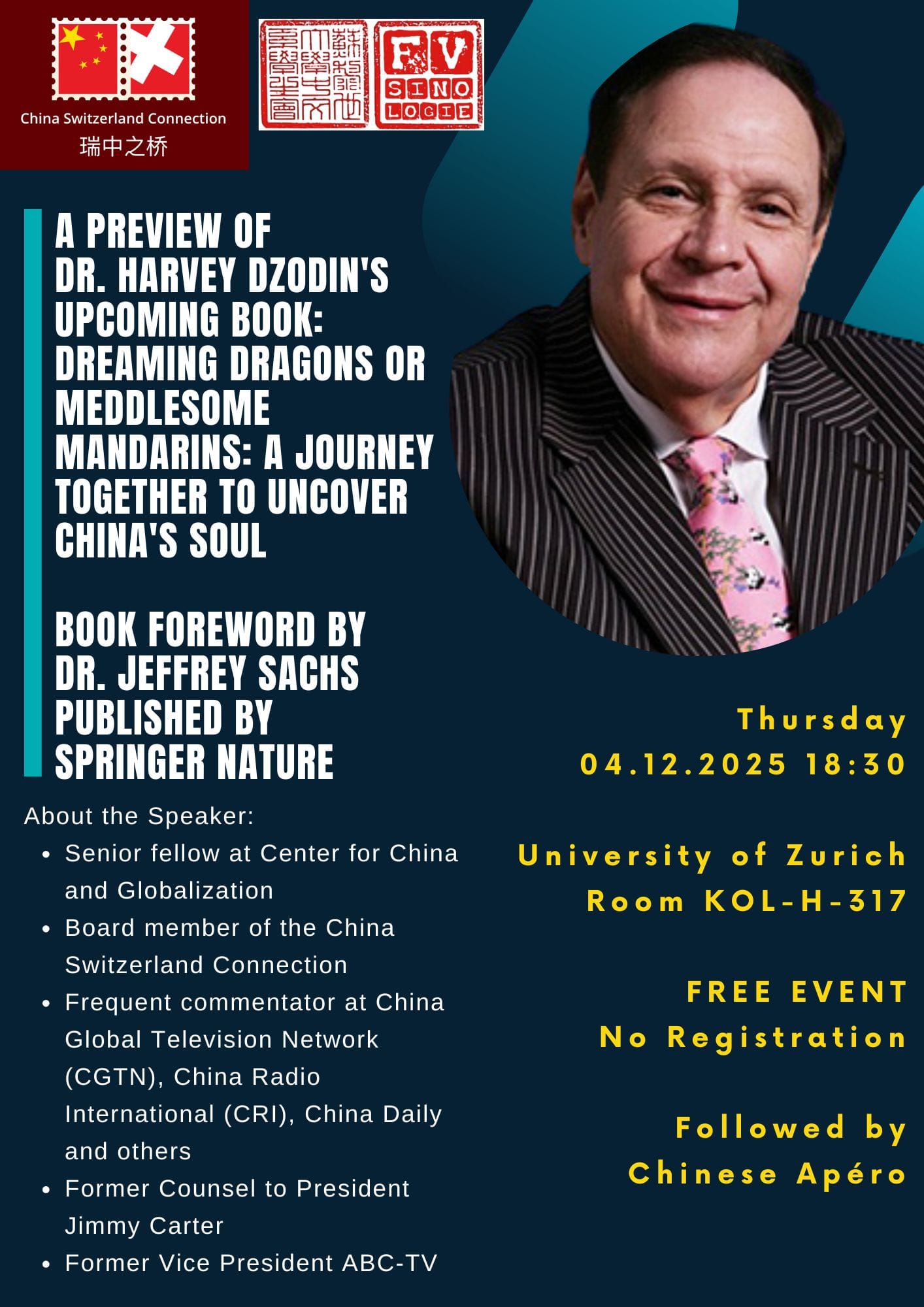 The Chinese Studies Student Association and the China Switzerland Connection invite you to an exclusive preview of Dr Harvey Dzodin’s forthcoming book Dreaming Dragons or Meddlesome Mandarins: A Journey Together to Uncover China’s Soul.