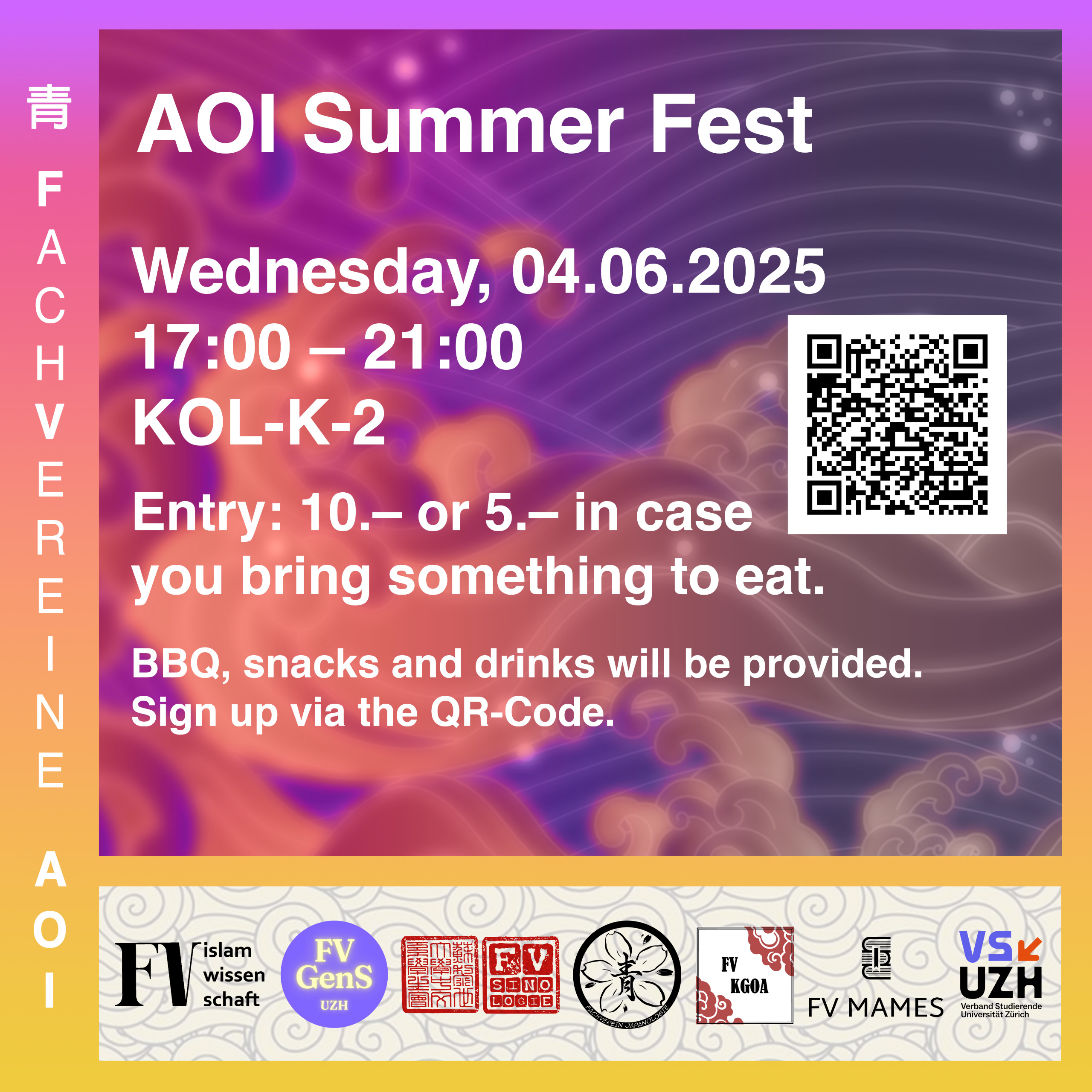 Join us on Wednesday, June 4, 2025, from 5:00 PM to 9:00 PM for a relaxed and cheerful Summer Festival at the Institute of Asian and Oriental Studies (AOI) – with a barbecue, buffet, drinks and great company.