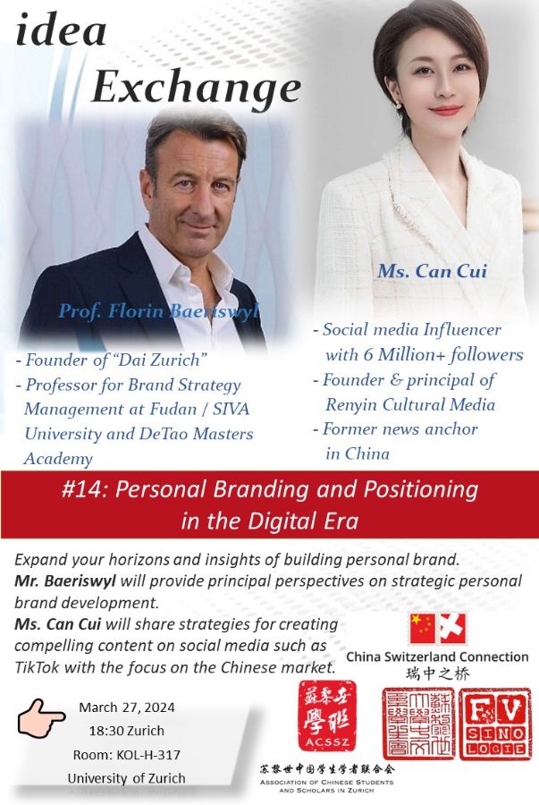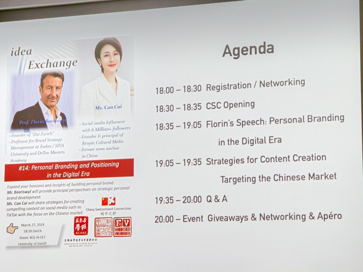 Prof. Baeriswyl wird die wichtigsten Perspektiven zur strategischen Entwicklung der eigenen Marke darlegen.